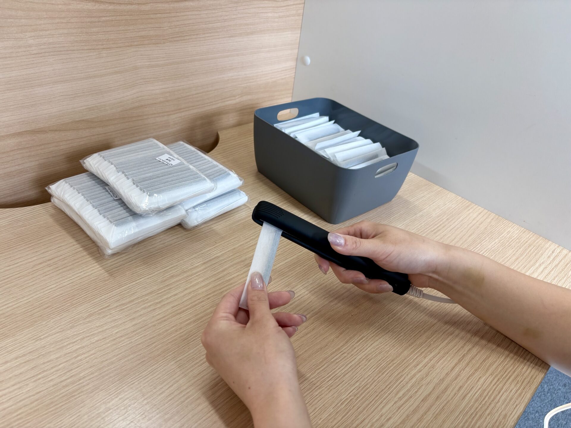 商品やサンプルを袋に入れ、数量を確認して仕上げます。