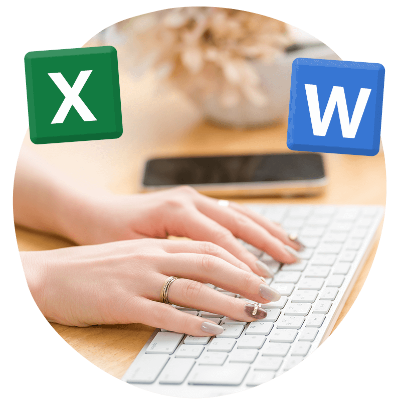 パソコンを使って依頼どおりにリスト作成やデータ入力などを行う作業です。