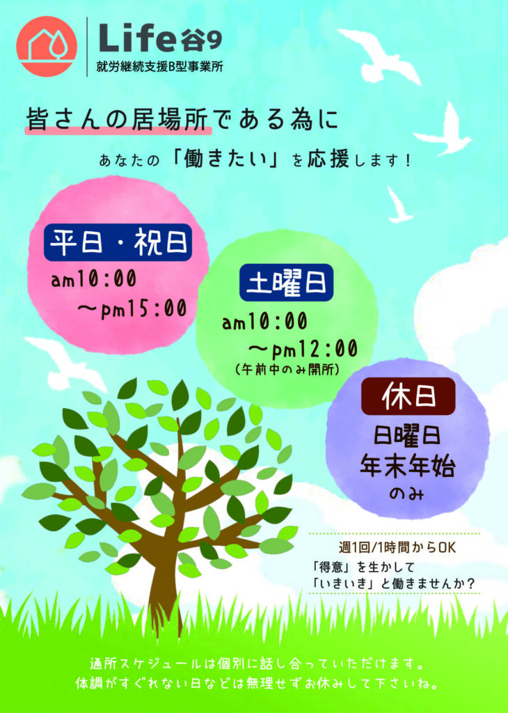 土・日 10:00~12:00(日曜日のご利用はLife谷九のみとなっております。)